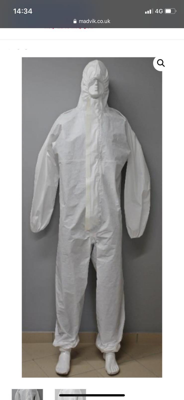 - Protective suit ( coveralls) covered central zip, round sleeves, waist, bottom, legs with elastic.